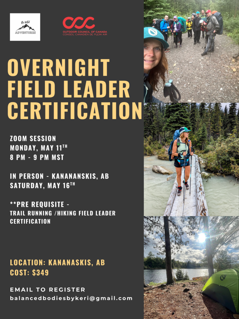 This certification is designed to help successful candidates be able to plan a safe backcountry overnight event following the event cycle learned previously in the required pre-requisite.